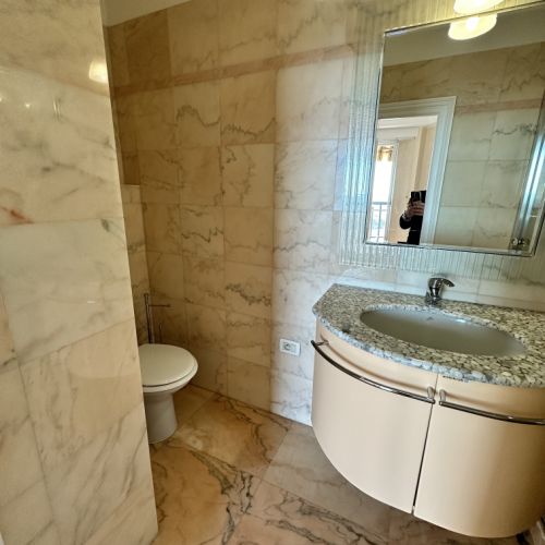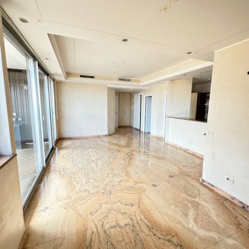 Situé au 21ème étage, dans un immeuble de standing moderne et parasismique, cet appartement climatisé, proposant des matériaux de qualité, vous accueille sur une surface d'environ 99m2. Il est composé d'un hall, d'un living-room, d'une cuisine équipée, de 2 chambres ayant chacune leur salle de bains avec wc, d'une grande loggia de 22m2, d'une belle cave attenante et agencée, ainsi que d'un parking.